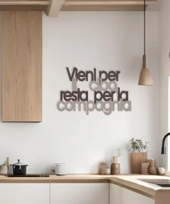 Callea Design Scritta da parete in legno “Vieni per il cibo…” -in varie colorazioni