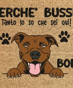 Tappeto PERSONALIZZATO con nome cane divertente Carlino Perchè bussi? Zerbino in poliestere 60×40 cm
