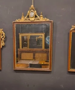 Le dimensioni della specchiera sono 93 x80, il che la rende un complemento d’arredo versatile. Presenta una finitura in patina, conservando la sua bellezza originaria. Anche se è in buone condizioni generali, potrebbe necessitare di un lieve restauro per riportarla al suo massimo splendore. Fa parte di un set di tre specchiere, disponibili nelle nostre altre proposte.