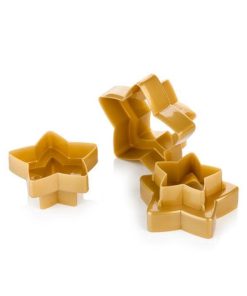 Tante forme a stella per i tagliabiscotti a doppio taglio! Ogni confezione contiene tre stampini tagliabiscotti ed ogni utensile ti permette di ottenere la tua forma preferita in due misure diverse, a seconda del lato che usi per tagliare la pasta: così potrai preparare biscottini e piccoli dolcetti, o addirittura deliziose crostatine! Prodotti in plastica resistente e colorata, sono pratici e sicuri anche per giocare in cucina con i tuoi bambini. Sono salva spazio, li riponi uno dentro l’altro.